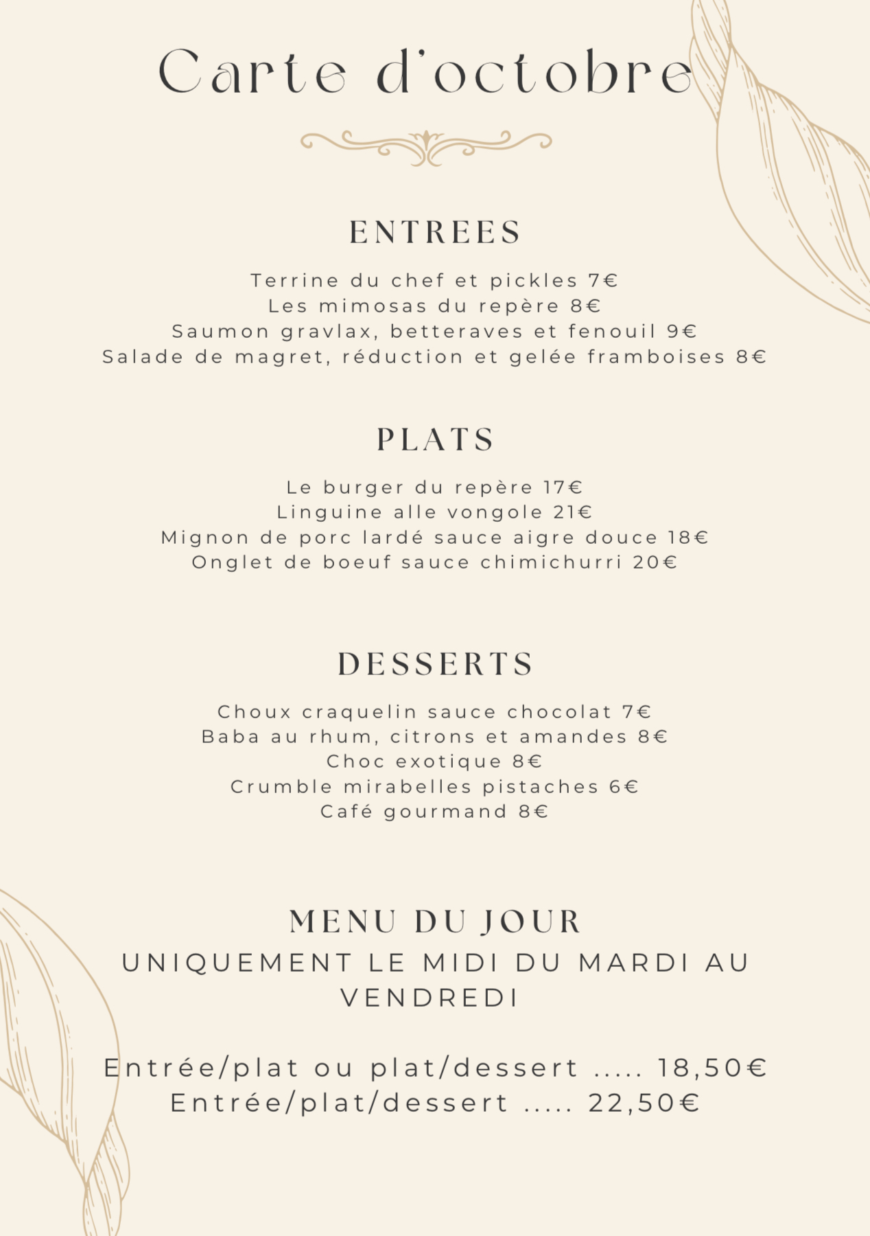 Le Repère – Brasserie conviviale à Barjouville Située en plein cœur de la zone commerciale de Barjouville. Le Repère vous propose une cuisine maison, élaborée à partir de produits locaux et de saison. Dans un cadre moderne et chaleureux, profitez d’une carte courte et gourmande pour vos déjeuners, dîners ou afterworks entre amis, en famille ou entre collègues.